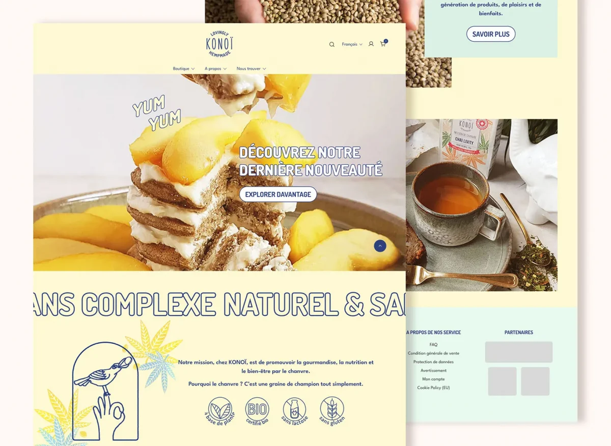 The homepage is designed to address common questions regarding hemp-based foods and to meet the needs of individuals who pay special attention to their diet. Soft and bright graphics inspire a positive, delightful food experience with natural ingredients, promoting a healthy lifestyle, and advocating for sustainable food production. This design fosters a welcoming atmosphere, ensuring visitors enjoy a pleasant shopping experience.