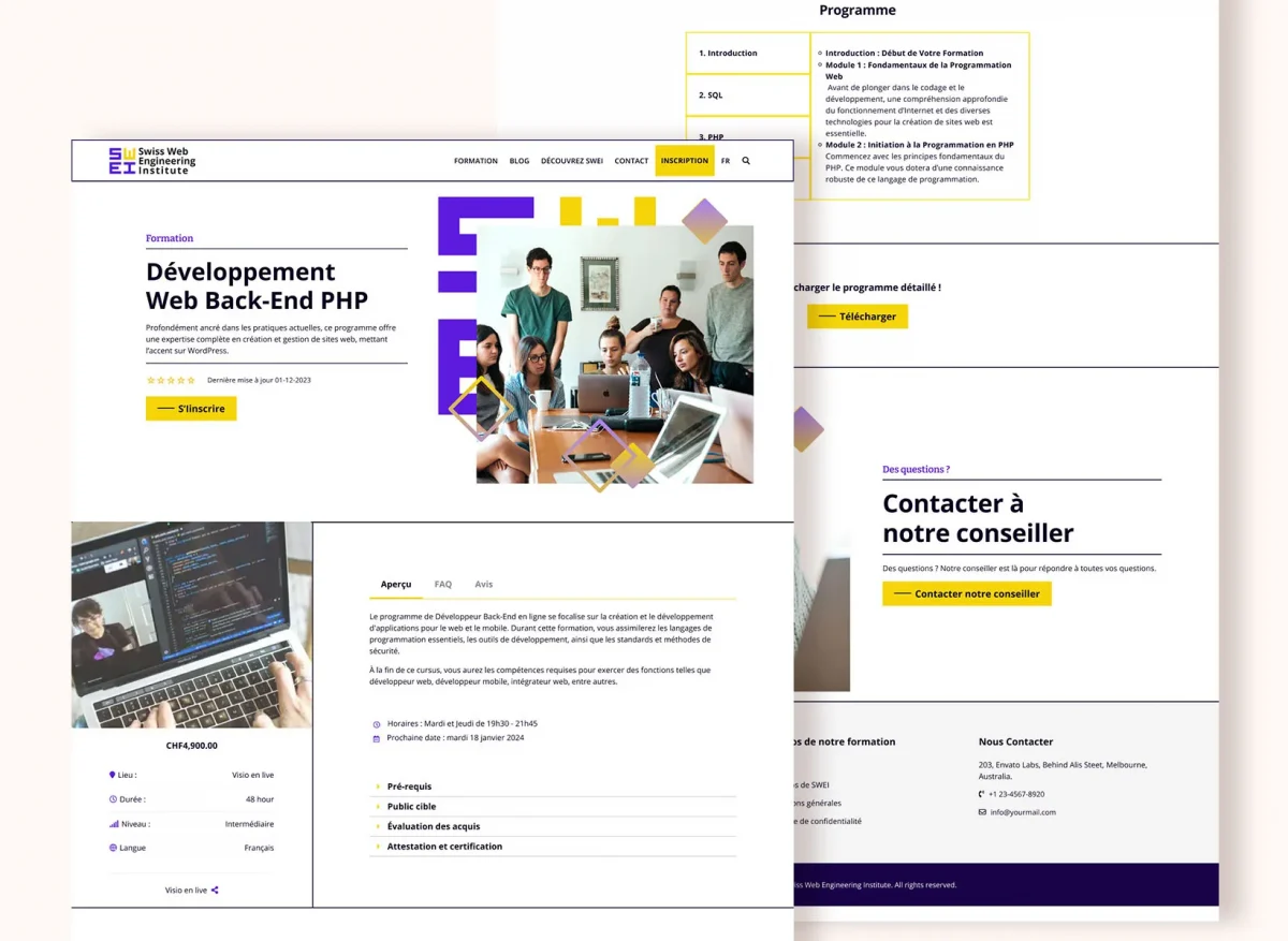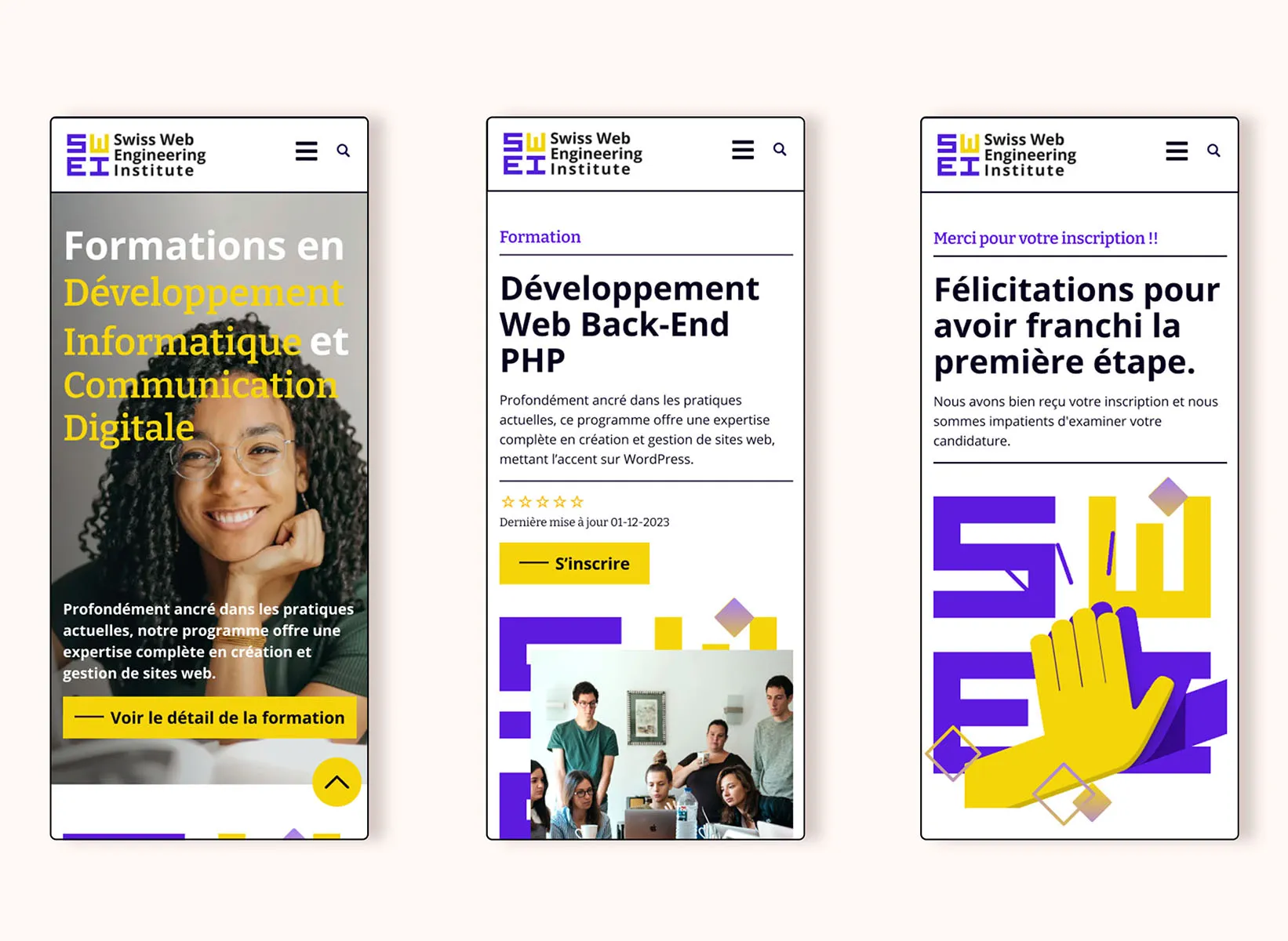 Swiss Web Engineering Institut (SWEI) aims to offer web development training that emphasizes direct teaching and practice. The objective is to design a seamless registration platform that reflects the quality, community, and loyalty the client wishes to convey.
